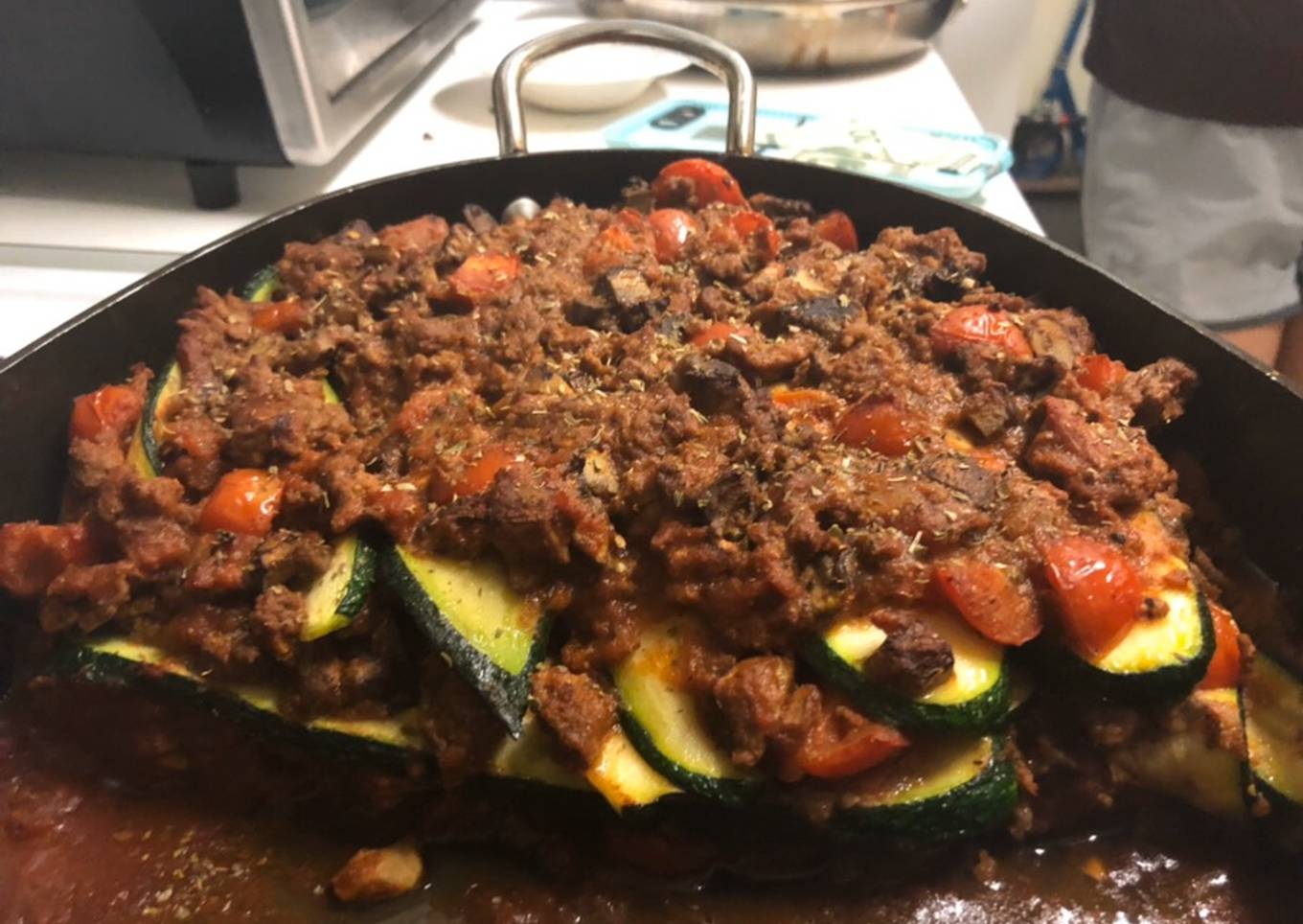 - Make layers of sauce/meat and zucchini