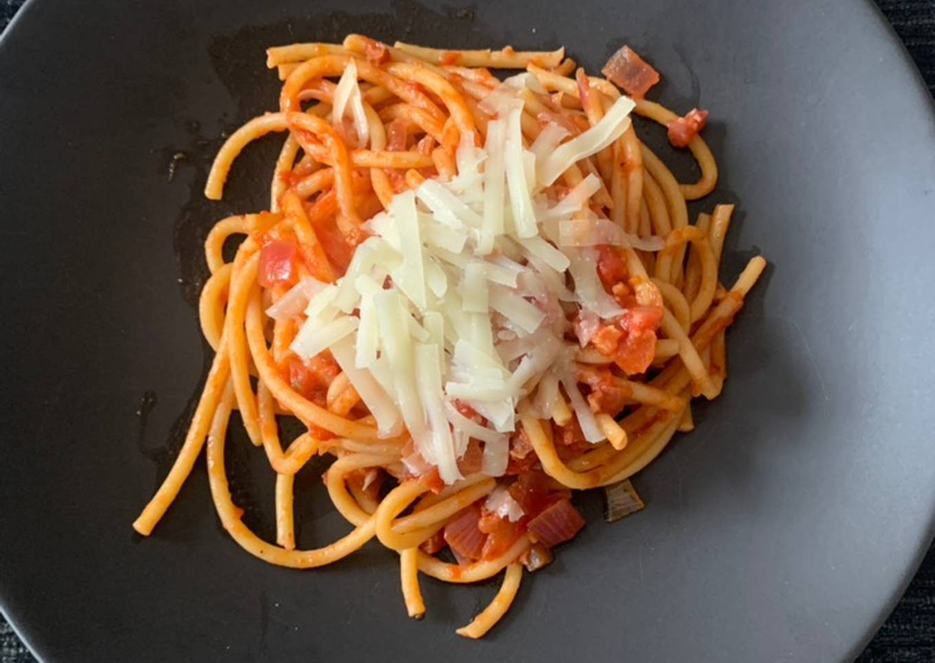 #pasta #Italian #dinner #easy #bucatini #spaghetti #bacon #pancetta #tomato #amatriciana #fresh #filling #satisfying #family #guanciale